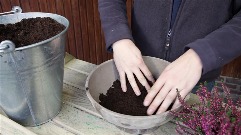Wenn Sie die Pflanzen nur bis zum Frühling verwenden wollen, reicht normale Blumenerde aus. Möchten Sie aber das Heidekraut darüber hinaus weiter kultivieren, dann greifen Sie besser zur so genannten Moorbeeterde. Diese ist unter anderem auch unter der Bezeichnung Hortensien-, Rhododendron- oder Azaleenerde erhältlich.
