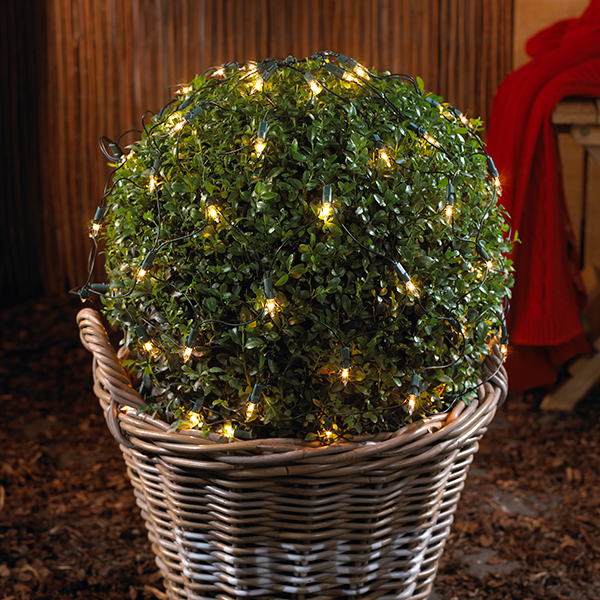 Sehr beliebt sind Lichternetze für Bäume, Sträucher und Hecken. Die Zuleitungen sind meist grün gehalten, während es die Lämpchen in Kalt- oder Warmweiß gibt. Sie sind aber natürlich auch in Bunt erhältlich, so ist für jeden Geschmack etwas dabei. Sie erzeugen im Garten ein stimmungsvolles, aber nicht zu aufdringliches Licht. Und dazu braucht es nur minimalen Aufwand: Die Netze sind im Handumdrehen drapiert und man benötigt lediglich nur noch eine sichere Stromquelle. Ebenso geringen Aufwand haben Sie mit ganzen Lichtersträngen oder Lichterbändern.