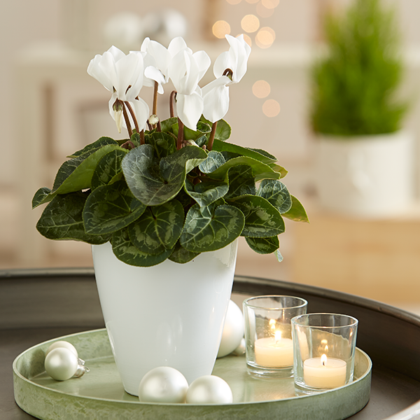 Das Alpenveilchen (Cyclamen) trägt bildhübsche Blüten in traditionellem Rot, modernem Weiß oder romantischem Rosa. Diese Pflanze lässt sich auf vielfältige Weise dekorieren. Für festliche Adventsschalen eignen sich Blattschmuckpflanzen zur Kombination ideal. Und wenn die Weihnachtsdekoration entfernt ist, kann man sich bis zum Frühling an den Winterschönheiten erfreuen.