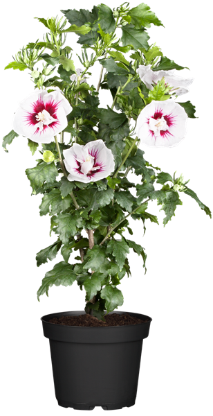 Der Gartenhibiskus (Hibiscus syriacus), auch Garteneibisch genannt, beeindruckt mit seinen exotischen Blüten. Das winterharte Gehölz blüht von Juli bis in den Herbst mit wunderschönen, schalenförmigen Blüten. Als Strauch oder kleiner Baum ist diese Pflanze vielfältig einsetzbar. Der Hibiskus kann sehr gut als Solitär stehen, aber ebenso gut in einer harmonischen Gruppe oder sogar als freiwachsende Blütenhecke.